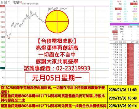 再者,台積電傳今年啟動先進製程大擴產計畫,2 奈米月產能將倍增以上成長,3 奈米增幅約三成,帶動先進製程關鍵耗材用量同步激增,相關重要協力廠未來幾年營運將跟著大爆發,因此,我們帶著家族成員全力鎖定的台積電 (2330-TW)、無塵室設備漢唐 (2404-TW)、亞翔 (6139-TW)、特化族群台特化 (4772-TW)、光電材料達興材 (5234-TW)、以及再生晶圓昇陽半 (8028-TW)… 等,是如何一檔接著一檔開心大賺的,相信大家都有目共賭!像這類底部起漲必買的飆股,都還有,大師兄都幫你準備好了,歡迎大家共襄盛舉!