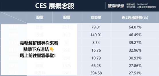 美國CES盛大登場,Vera Rubin強勢亮相;CES概念股熱度升溫,相關族群都在這!