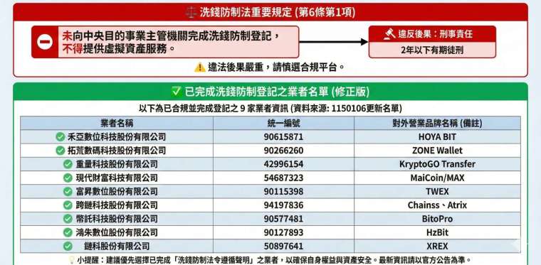 首要條件:必須完成「洗錢防制聲明」。在台灣,合法的虛擬貨幣交易所必須向金管會登記完成「洗錢防制法令遵循聲明」。