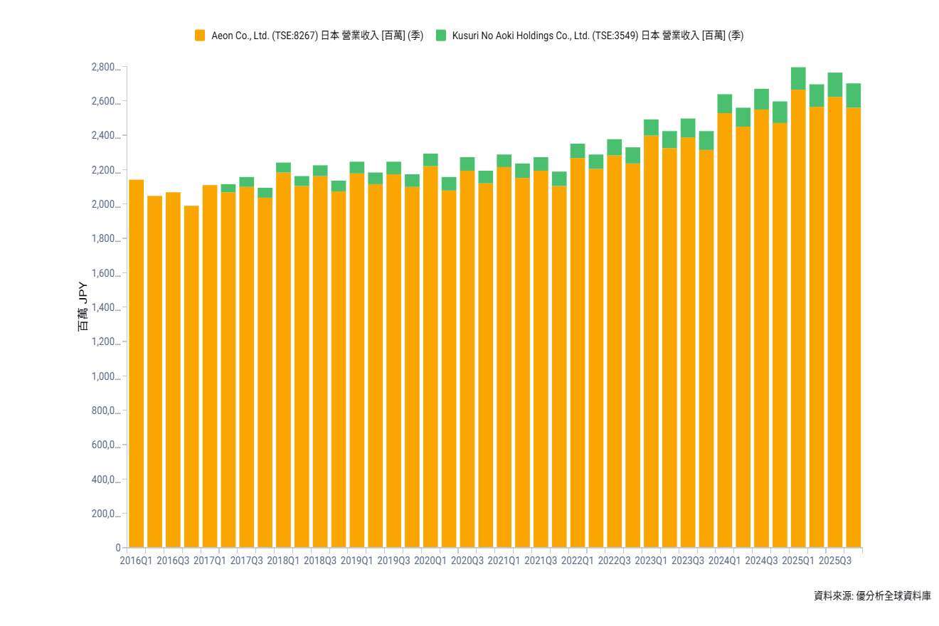 永旺是日本最大零售集團之一,業務橫跨量販店、超市、折扣通路、藥妝零售、金融服務與購物中心開發,形成完整的零售生態系。近年在日本零售市場成長趨緩下,永旺積極強化「健康與生活」相關事業,藥妝與健康照護通路被視為中長期成長重點。