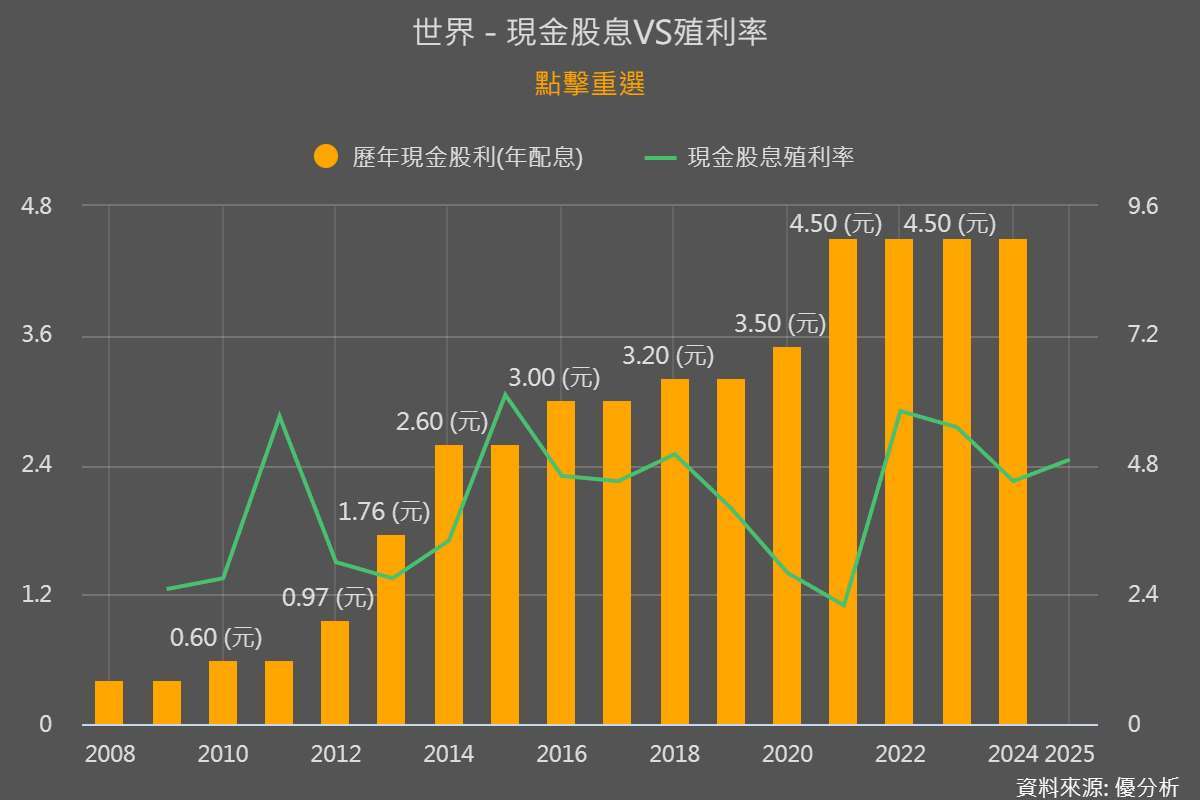 每股盈餘 4.3 元,董事會決議配發每股現金股利 4.5 元,已連續五年維持高配息水準,以 2 月 3 日收盤價 135.5 元計算,殖利率約 3.3%。
