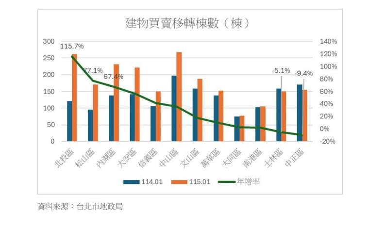 從行政區來看,北市 12 個行政區中僅中正、士林小幅修正,其餘多數行政區明顯回溫,尤其北投年增高達 115.7%,松山、內湖年增 77.1%、67.4%,大安區、信義區也有 4 成以上增幅。蘇金城理事長強調,這說明只要條件與價格合理,買方就會進場,不是地段不好,是開價不切實際。