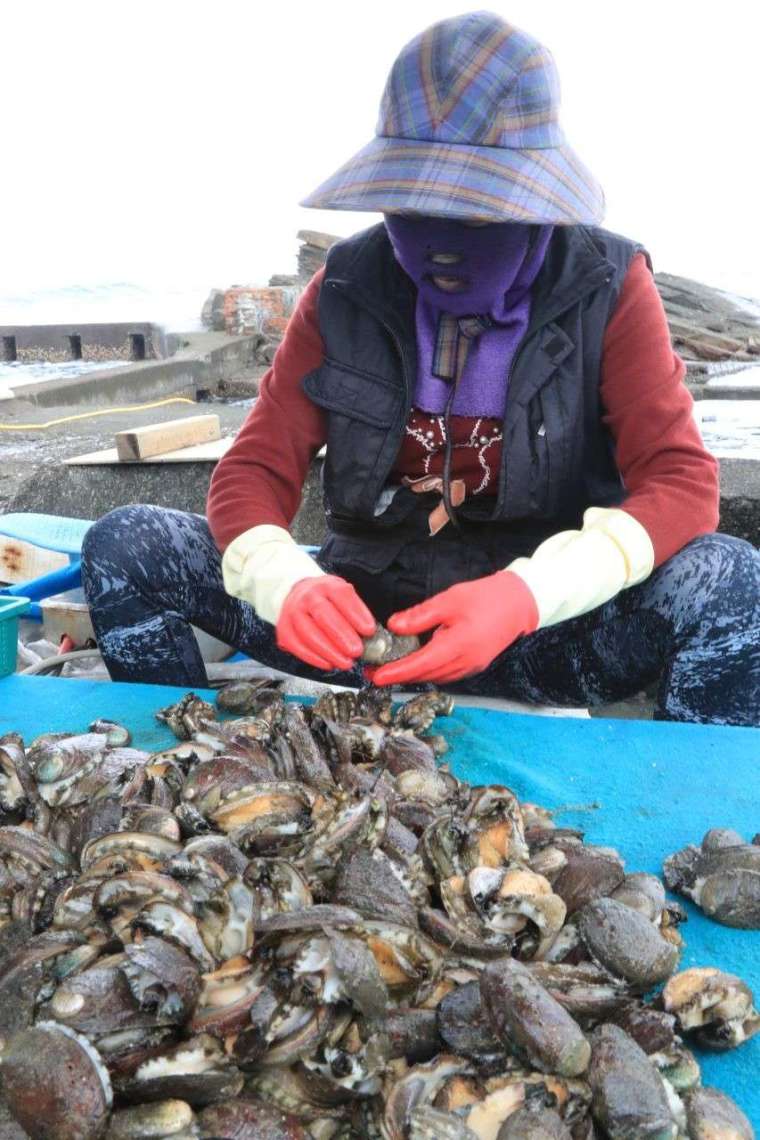 05▲海漢子採集上來的九孔,會迅速交由貢寮海女進行分級與品管,然後每 5 公斤裝成小箱,並立即鮮活送往台北餐廳。