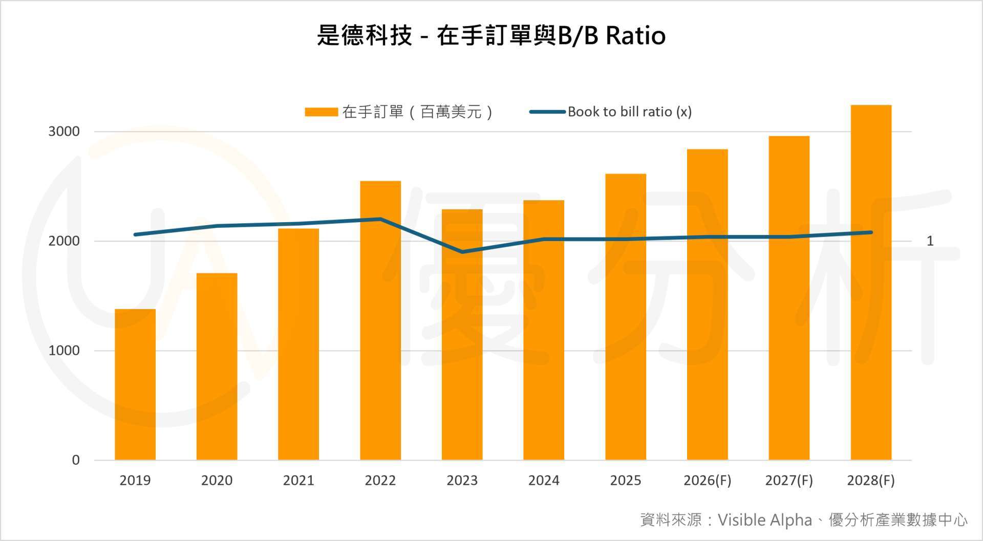 從上圖歷史趨勢來看,在手訂單規模自 2023 年回溫後持續攀升,B/B ratio 長期維持在 1 倍以上,顯示這波動能來自結構性需求。