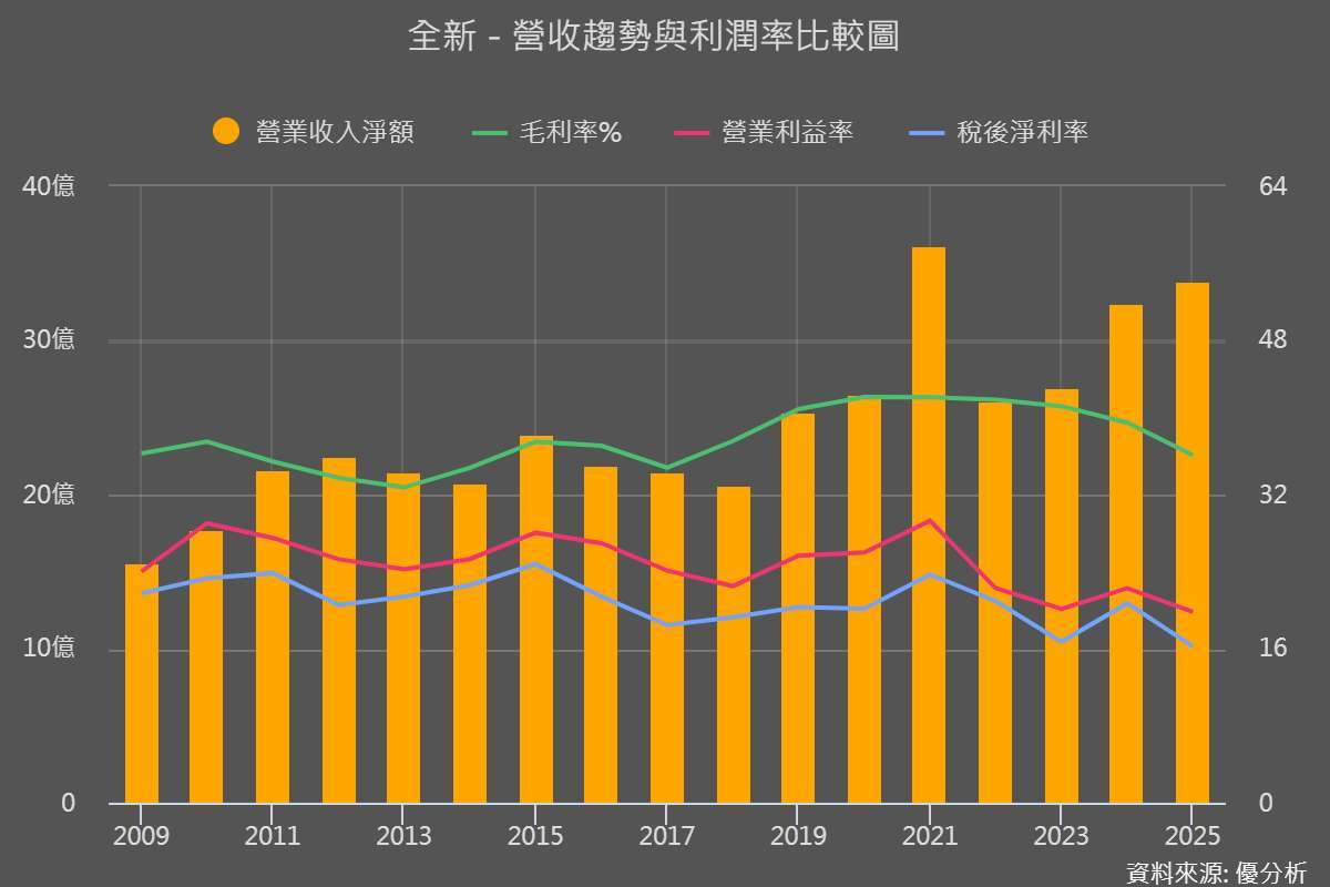 上圖中,全新自 2023 年營運谷底後逐步回升,2025 年下半年營收動能明顯加速。