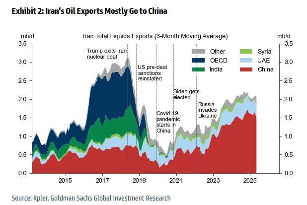 單純伊朗原油供給中斷的影響並不大,以全球原油日產量約 1 億桶估算,伊朗僅約 150 萬桶 / 日,其中輸往中國高達佔 9 成,這是最近軍機擾台的連日終止,航母出航移防行動終止的主要原因,但屬於個別影響。