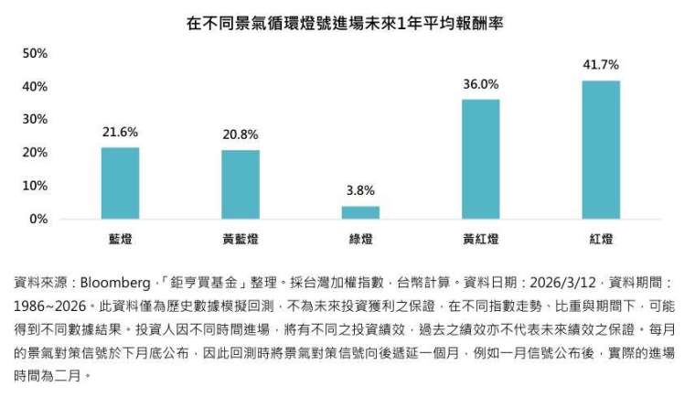 鉅亨投資雷達》數據顯示:景氣紅燈亮進場,台股驚人報酬率曝光