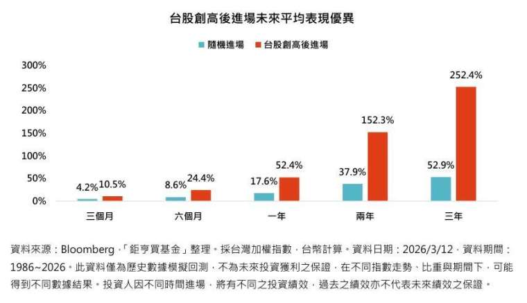 面對台股近期不斷創新高,加上景氣對策信號仍是代表「熱絡」的紅燈,許多投資人難免心生恐懼,擔心現在進場會「套在最高點」。然而歷史數據顯示,現在可能正是掌握超額報酬的關鍵配置期。根據最新回測結果,台股在創高後進場的未來平均報酬率均顯著優於隨機進場,未來三年之平均報酬甚至高達 252.4%,遠超隨機進場之 52.9%。景氣信號進入紅燈區雖代表經濟熱絡,但不應被視為退場訊號;當前「紅燈 + 創高」的市場環境,反而正是台股展現強勁韌性及增長動能的時刻。當然,儘管數據顯示這樣的結果,但在做出投資決策時,還是要綜合考量其他經濟狀況與市場趨勢,才能確保投資的穩健性。