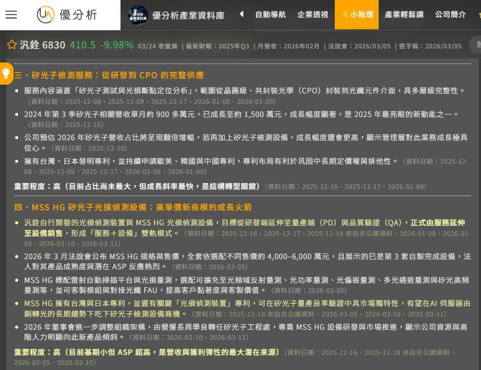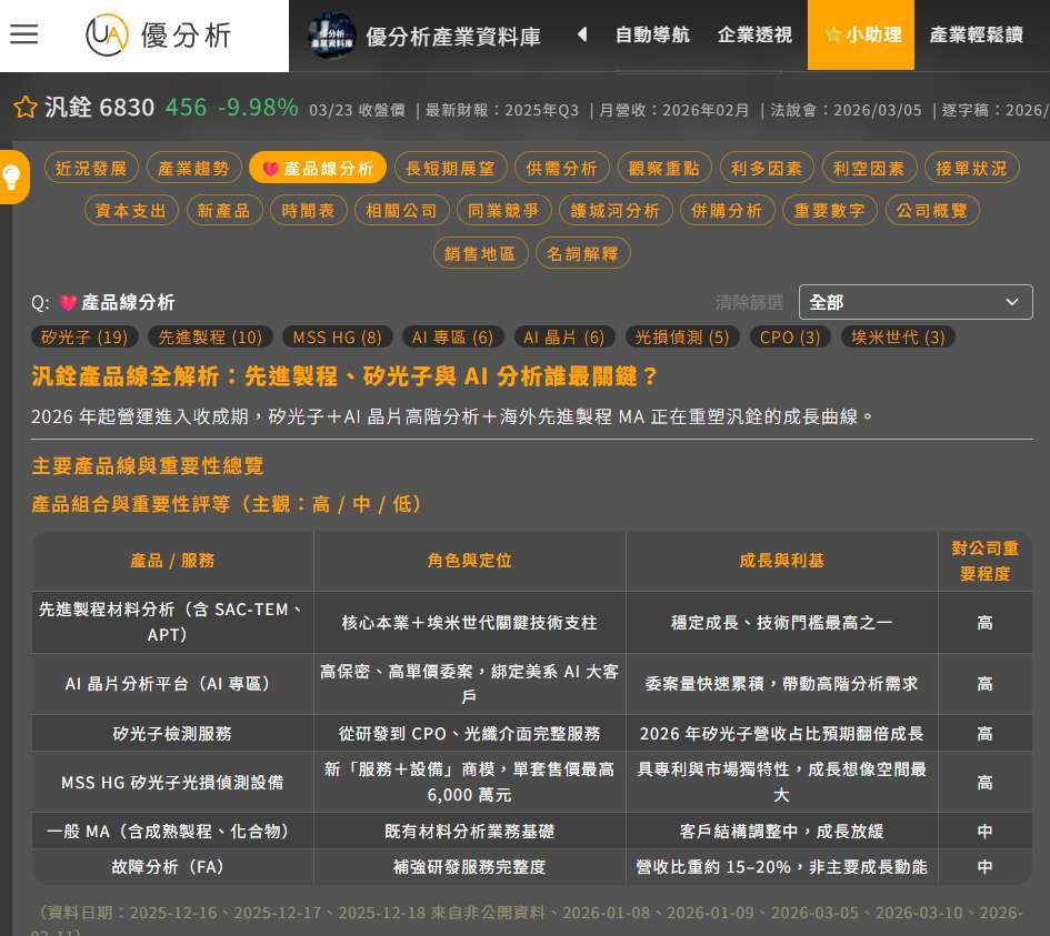 這些資訊,其實在優分析產業資料庫裡都能找到,不管是公司說法、營運數據,還是優分析整理的獨家資訊,都可以拿來持續追蹤。
