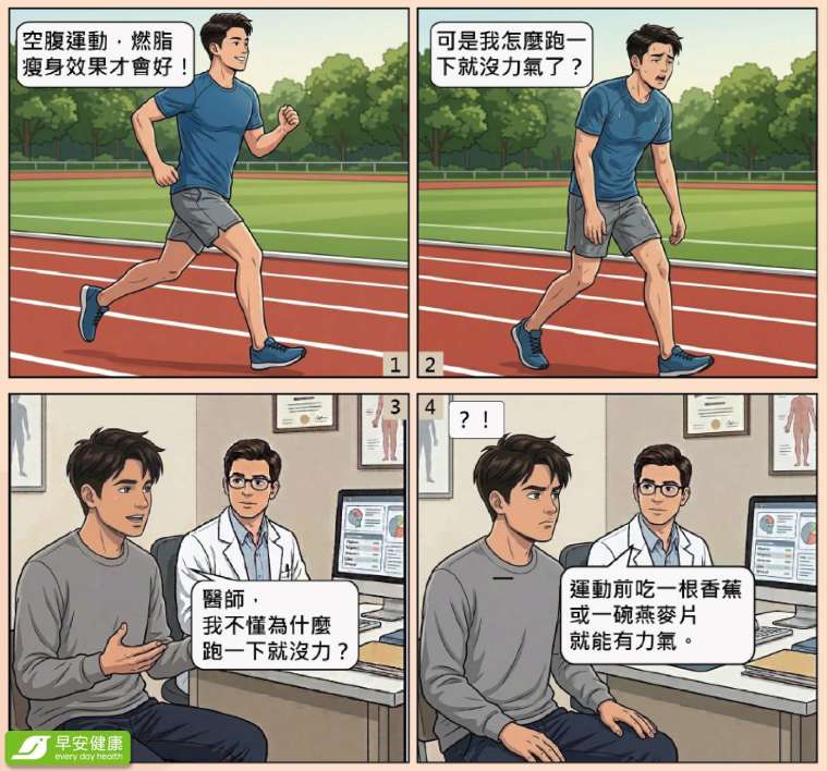 有些人認為空腹運動可以多燃脂,但研究顯示差異其實非常小, 三十分鐘只多消耗約三克脂肪,幾乎可以忽略。更重要的是,如果肝醣耗盡仍繼續運動,身體往往會開始分解肌肉來取得能量。
