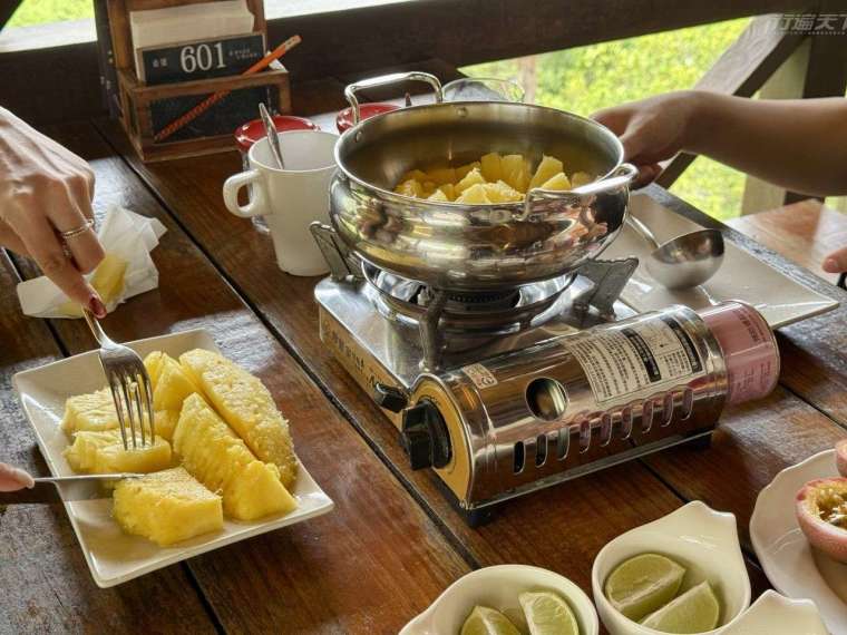依隨季節推出的香草果醬手作體驗,春天主打「鳳梨百香果醬 DIY」,同時還會添加檸檬汁與蘋果片,讓水果的酸甜與草本的清香完美融合。旅客從水果切片、磨成泥狀、熬煮、調味,通通自己來,最後將充滿手感溫度的果醬裝瓶帶回家,讓旅行的味道延續到日常生活。