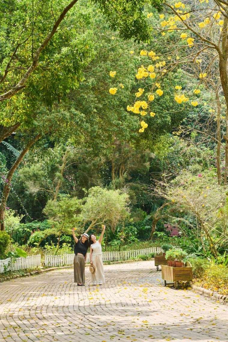 20 多年過去,海拔約 375 公尺的安妮公主花園,如今蘊藏著豐富生態與植物樣貌,偌大的園區巨木環繞、百花叢生,歐風小屋、森林婚禮場域與餐廳錯落其中。春天紫藤、鳶尾與桐花為山谷添上淡雅色彩;夏天繡球花與金針花盛開;秋天迎來新社花海的熱鬧景象;冬天則有櫻花、芳香萬壽菊與瑪格莉特點綴林間。四季景色迥異、生機無限,不僅適合舉行婚禮派對、團體聚餐,也是親子同遊、家族旅行的絕佳選擇。