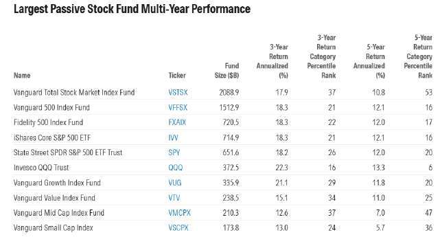 大型被動型股票基金的長期表現