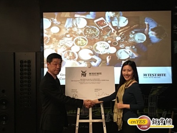 特力集團資深副總何采妍(右)與WMF 集團亞太區總裁鄭乃光(左)舉行簽約儀式。
