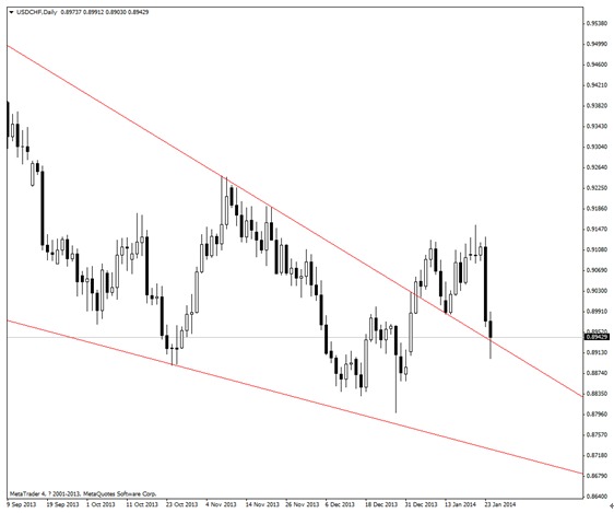 天圖分析來看,價位再次墜落於下降頻道之內,中短期可依然看空,參考目標位為0.8600附近。