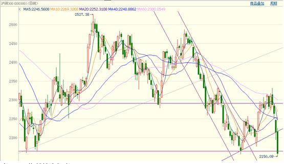 總結:馬年伊始,期指大幅反彈,開了個好局,反彈高點達到2330點附近(前期高點),近日在匯豐pmi數據差強人意后大幅回落,收盤價回落至2150點一線。市場在下跌過程中有恐慌現象,熊市特征明顯。目前並沒有看到止跌跡象。