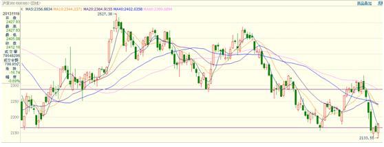 總結:馬年伊始,期指大幅反彈,反彈高點達到2330點附近(前期高點),近期在匯豐pmi數據差強人意后大幅回落,收盤價回落至2150點一線。市場在下跌過程中有恐慌現象,熊市特征明顯。周五下午的反彈有一定力度,估計股指進入反彈階段。