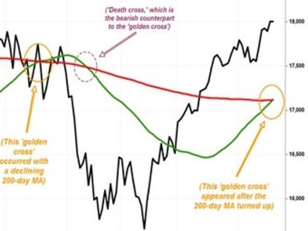 《MarketWatch》報導,代表美股短期趨勢的道指 50 日移動均線 (MA),週二由前日的 17085.42 點上升至 17121.41 點,突破了由 17115.10 點升至 17116.47 點的長期趨勢指標 200 日 MA。技術分析師認為,通常出現這種所謂「黃金交叉」,意味短期漲勢可能演變為長期漲勢。