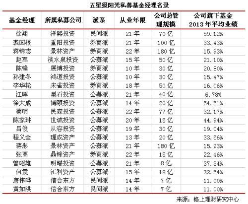陽光私募自誕生以來,不斷吸納投資精英,時隔十年,截至2013年12月31日,陽光私募行業已匯聚704位基金經理,明確派系的有429位。其中,公募派(共125位)最受矚目,明星基金經理“奔私熱”幾乎是過去幾年永恒的熱點,華夏基金、博時基金等老牌基金公司,成為陽光私募的黃埔軍校,源源不斷的輸送投資人才。券商派人數最多(共229位),以其專注調研、規則靈活等優勢,成為中小型私募的中流砥柱。而民間派則以生猛彪悍的投資風格,常常以“黑馬”姿態盤踞在排行榜上。