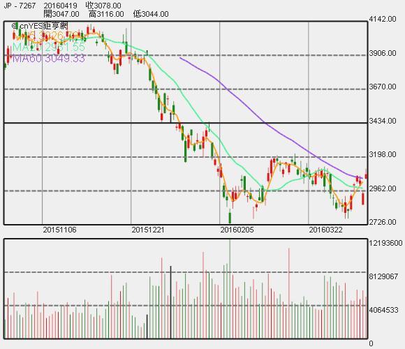 本田股價周一晨間 09:40 下跌 0.36% 至 3594 日元。