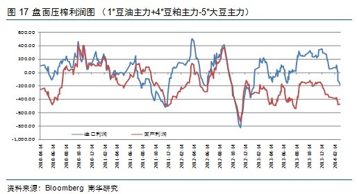 圖17 盤面壓榨利潤圖 (1*豆油主力+4*豆粕主力-5*大豆主力)