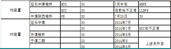 7月中下旬,煤化工裝置陸續投產。由於寧煤二期上游裝置沒有開啟,其關停一線的50萬噸產能,所以實際上寧煤的新產能並未釋放。我們認為這些新裝置的投產將沖擊l-pp的價差結構。