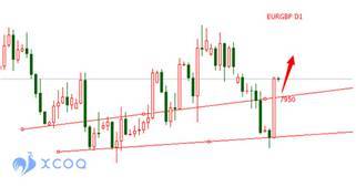 歐元在此前的大幅下挫之后,跌勢有所收緩,而在此期間,英鎊則大幅下挫,這就是歐鎊一柱擎天的原因之所在。相信歐鎊后市還將繼續上行,操作上應該逢低做多為主,可以選擇在趨勢線7950附近支撐進場做多,止損7930,止盈8020。