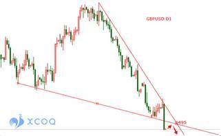 英鎊走勢方面,周線的下跌依然在繼續,而且暫時沒有停止的跡象,這也表明英鎊空頭在未來一段時間內,還將繼續占據主動地位。日線上看,兩條趨勢線交叉位置構成短期交易的阻力位置,位置在6495附近,因此,日內可以選擇在6490-6500一帶布置空單,止損6520,止盈6430-6400。