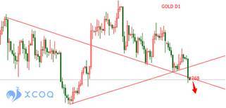 黃金走勢上,從下圖可以看出,日線的向上和向下的兩條趨勢線支撐,都被黃金空頭突破了,並且是用一根k線就突破了,說明黃金空頭也是氣勢很盛,日內應該尋找反彈機會版面空單,可以在1268-1270做空黃金,止損1272,止盈1260-1255。